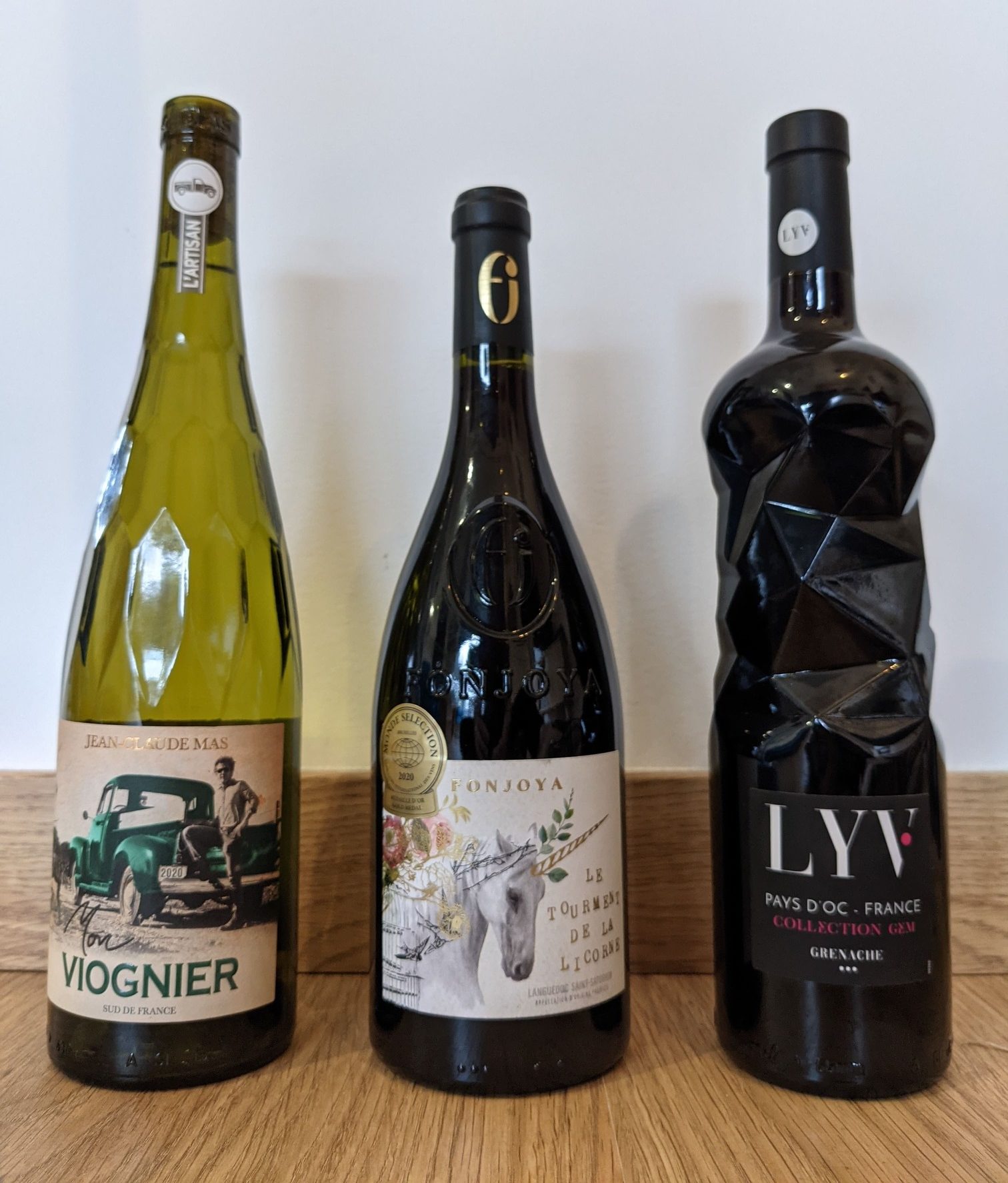 Une étiquette qui attire de suite notre oeil avec une licorne majestueuse et un joli nom qui retient aussi toute notre attention : « Le tourment de la licorne« . Un hommage de la maison Fonjoya à l’oeuvre éponyme de Max Rouquette (1908-2005). Un nom qui évoque le mystère, le rêve et qui fait appel à l’imaginaire. Néanmoins, la bouteille est bien réelle et trouvera toute sa place sur votre table ! Cette bouteille a été conçue par le groupe O-I. Encore ici un vin rouge, mais cette fois-ci sous l’appellation d’origine contrôlée Languedoc Saint-Saturnin. On y retrouve les cépages classiques de la région que sont le Mourvèdre, le Syrah et le Grenache. Un vin élégant et soyeux, à l’image de la licorne!